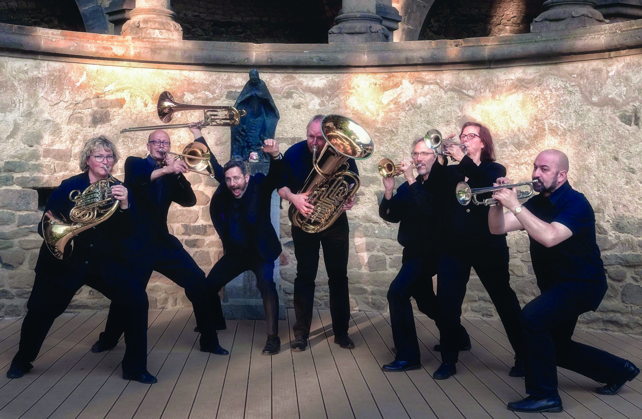 Rodion Doubirnyi, Kornelia Goldstein und Sebastian Schürger (Trompete), Isabelle van de Wiele (Horn), Martin Sander und Tilman Gruhn (Posaune), Georg Frericks (Tuba).